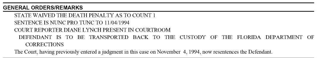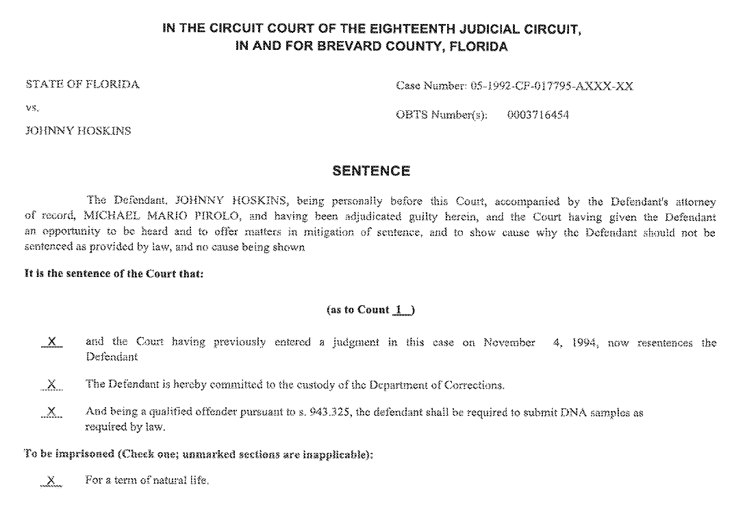 Johnny Hoskins was originally convicted of first-degree murder and sentenced to death on November 4, 1994. In July he was resentenced to life after a plea deal with the State.